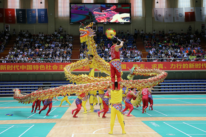 开幕式前,我校师生进行了舞蹈《且吟春语》、龙狮表演《龙腾狮跃》、歌伴舞《千年黄州》等节目表演。开幕式上,大家共同观看了第二十二届大羽赛黄师形象宣传片。开幕式后,各个比赛项目有序开展。