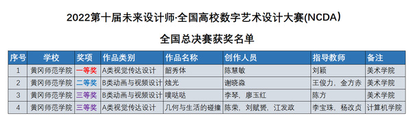 【黄师荣誉】我校学子在2022第十届未来设计师•全国高校数字艺术设计大赛(NCDA)全国总决赛中获奖